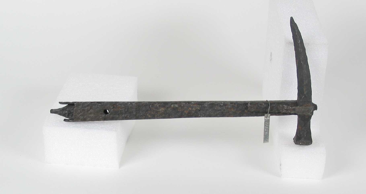 Kanon, a late medieval cannon, of the banded metal type. While the earliest reference to gunpowder in scandinavia come from 1250 or so, and a fellow named Paal Fisiler definitively demonstrates it, and explains it as a psychological weapon - "One often uses such hærbrest in war in order to make those who do not know of it flee in all directions" - in Bergen between 1292 and 1296. Real siege artillery did not become common until the later middle ages.
