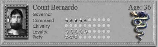 ..The Dukes nephew Augostino has joined the army of the Duke to begin his military career. Vicco Cremasano, husband of the Dukes niece has also joined Duke Bernardos grand army as a political favor to the Cremasano family of Milan. Duke Bernardo is uneasy about having to rely on someone untested in his army..but only the heat of fire in combat will expose the incompetent.