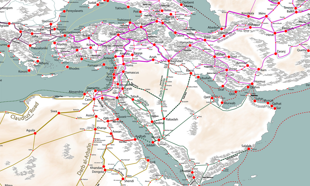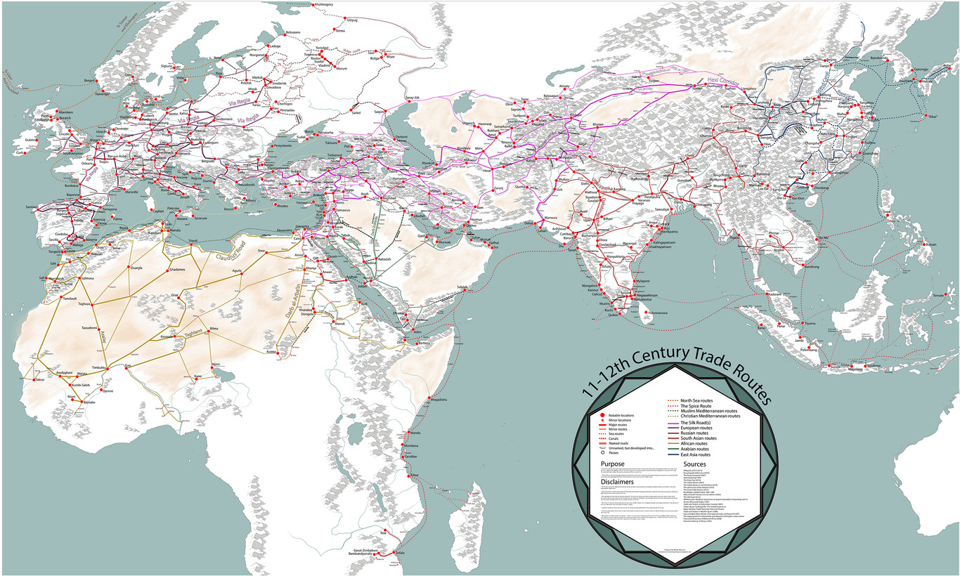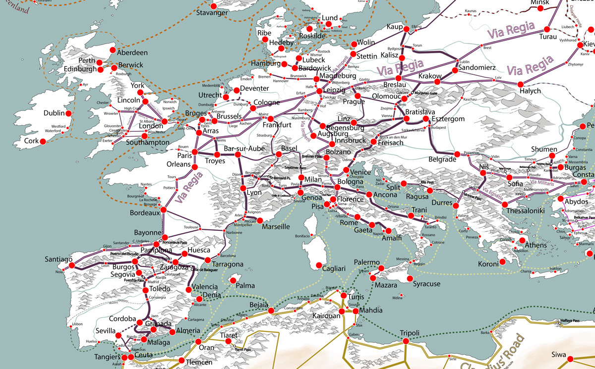 Here I leave the map of all commercial routes during the middle ages (s XI-XII) for later representation in the game: