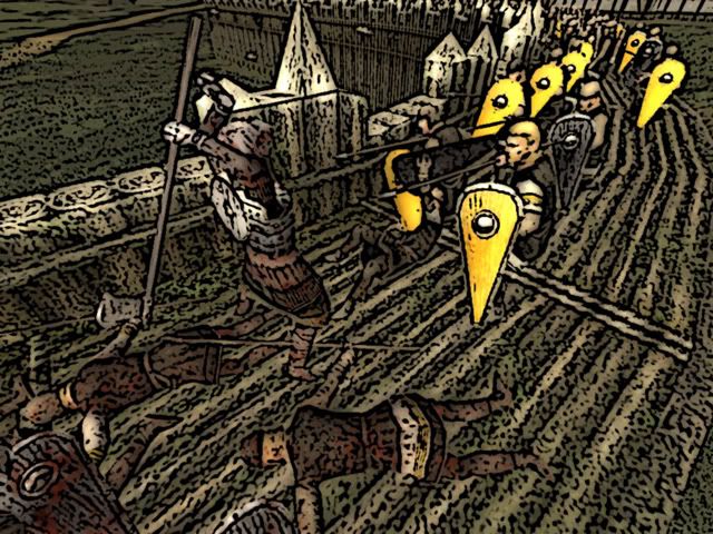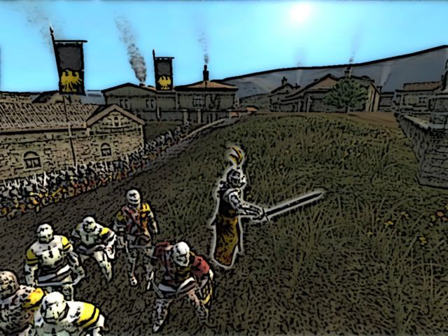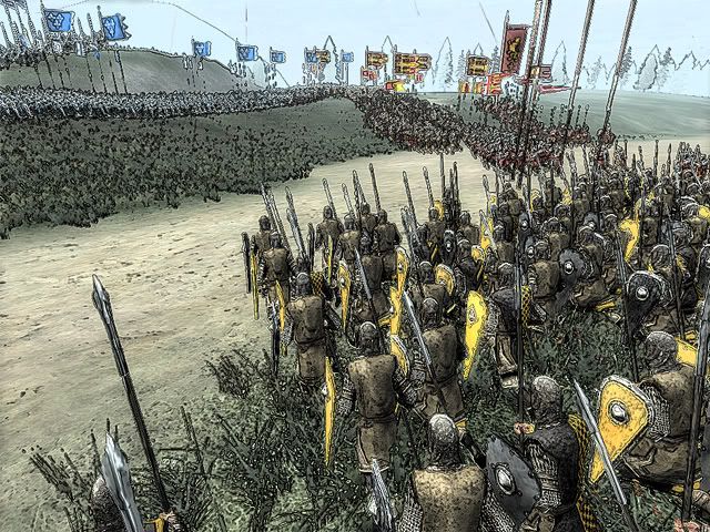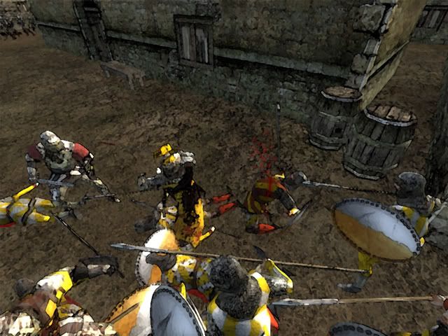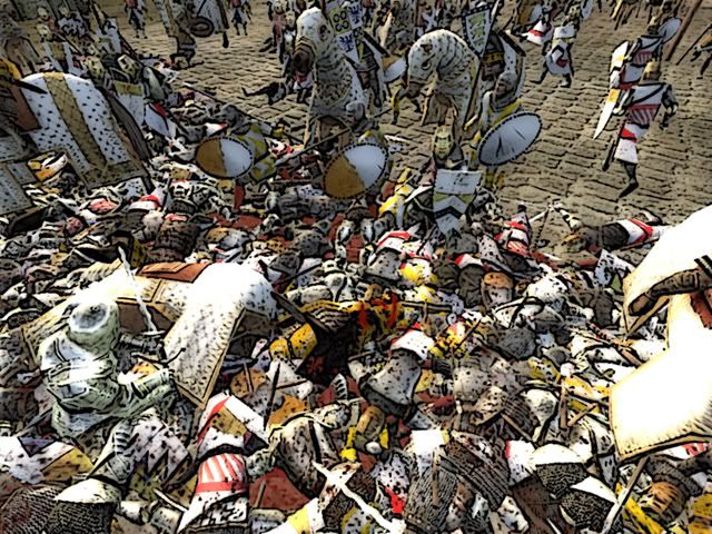 Annoyed by all this family problems Edmund happily joined the Crusade at 1120 to Antioch. He took the city Attalia and Aleppo on the way and finally arrived at Antioch. The battle was bloody and was about 2 hours long. The Muslims fought with great motivation because they knew the crusaders would show no mercy. With high losses Edmund attacked one last time, storming up the siege ladders. A group of 38 Crusader Knights managed to open the gate so the rest of the army could storm the city. Fully in Rage, Edmund was riding into the masses of muslims, who saw their dead coming when staring into Edmund´s eyes. Edmund slaughtered every single one of the Muslims in his rage, supported by his loyal Crusader Knights. Finally, after 20 minutes of street battle Edmund managed to take the city, but badly wounded. With losses of over 600 men it was a bloody battle but the crusade was an sucess.