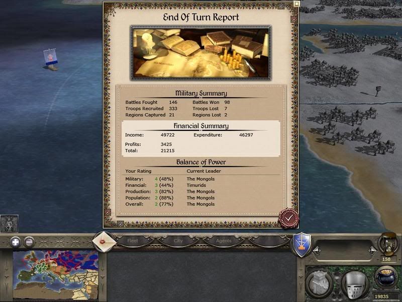It seems that I can only get money when I am attacking (Had just sacked Arhus a turn earlier) Mongols have never grabbed any of my territory, but I had one of theirs, which they took back...