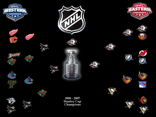 The Stanley Cup... The sporting world's most coveted trophy... The oldest of any kind... Is up for grabs yet again. In the east the young Penguins battle it out among the President Trophy winning Sabres and the always talented Senators, while in the west looms the fast moving Wild and the defensively talented Ducks...